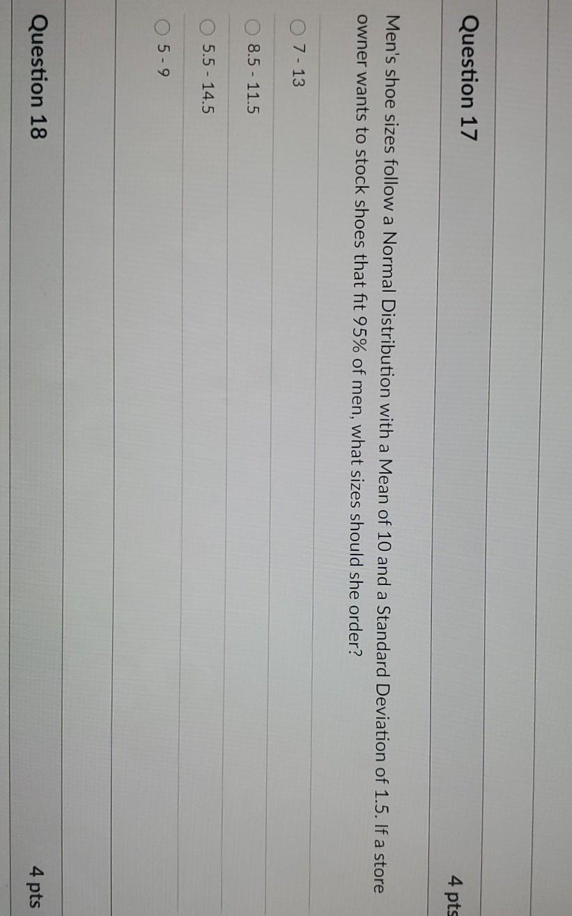 Solved Question 17 4 Pts Men S Shoe Sizes Follow A Normal Chegg Com
